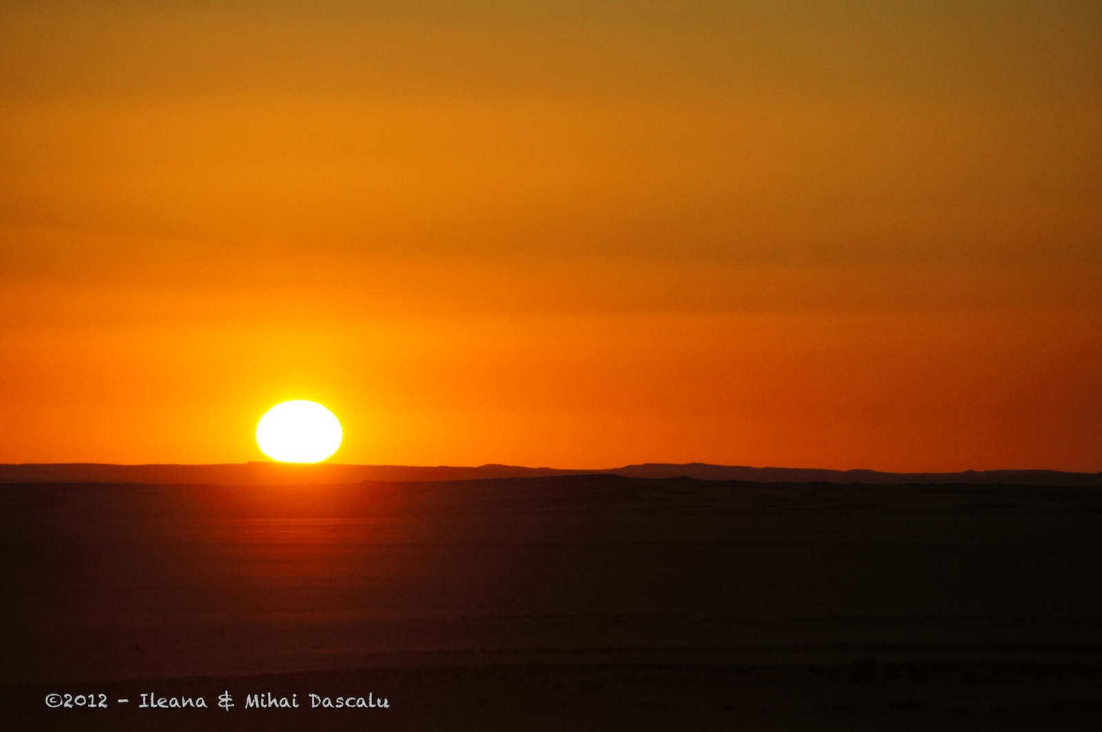 A mini-bus picks us and drives to the place where a convoy is forming. Officials dressed in white shirts with black sweaters talk in walkie talkies, people are hurrying to their choice of transport, and we all start toward the exit. The two line road is just one way at this hour, toward Abu Simbel. There is an incredible sky, almost black, with so many stars, it seems unnatural. Though it is the Northern Hemisphere, the one in which I grew up, the one that I missed while looking at the Southern Cross, I recognize only Orion. After a while, one side becomes bluish, then milky, then pink, then out it rolls the fiery sun.
